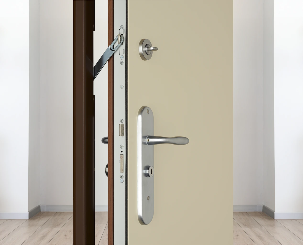 Entrebailleur manuel : Permet d’entrouvrir la porte tout en évitant une intrusion en force du visiteur